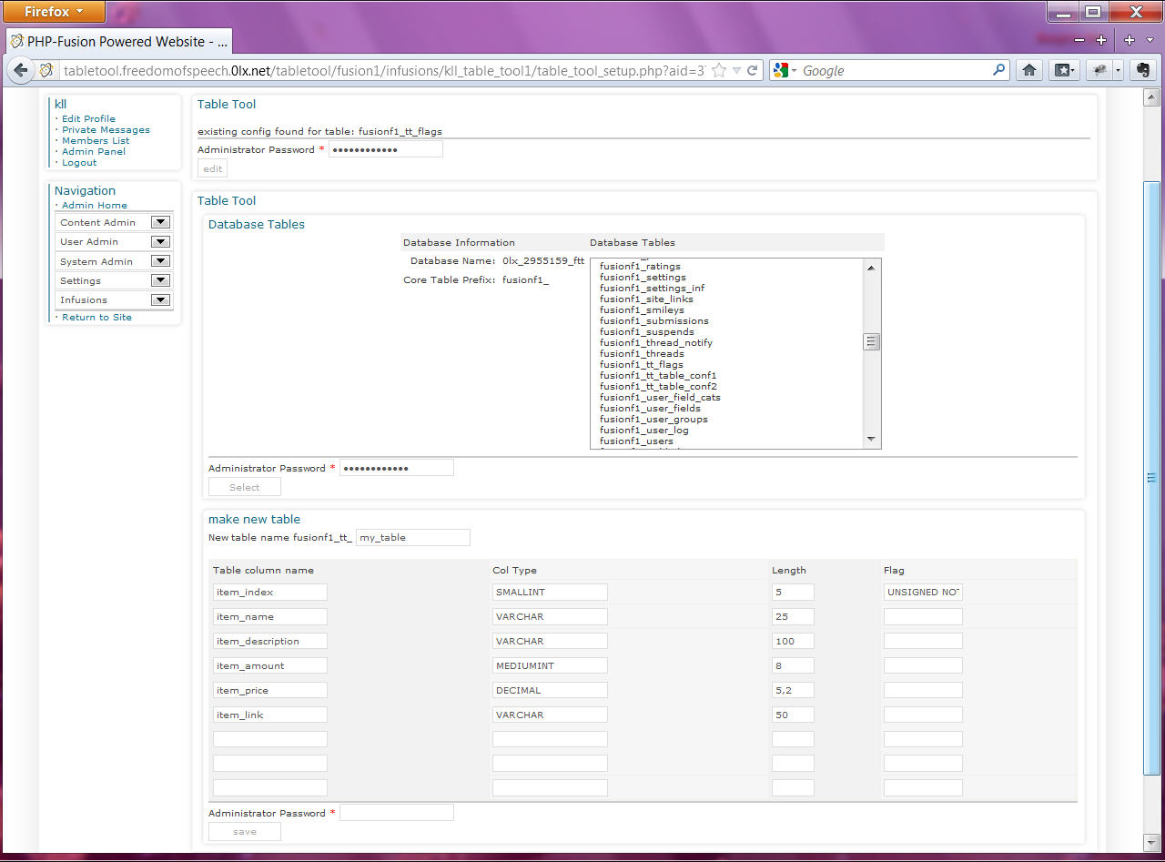 this PHP-Fusion infusion allows to create a new / use any existing table/,