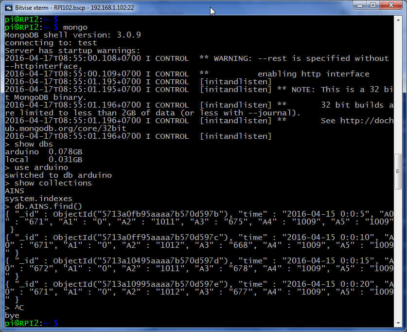 i do a random test generator in a arduino and the RPI should feed that to the mongo database.