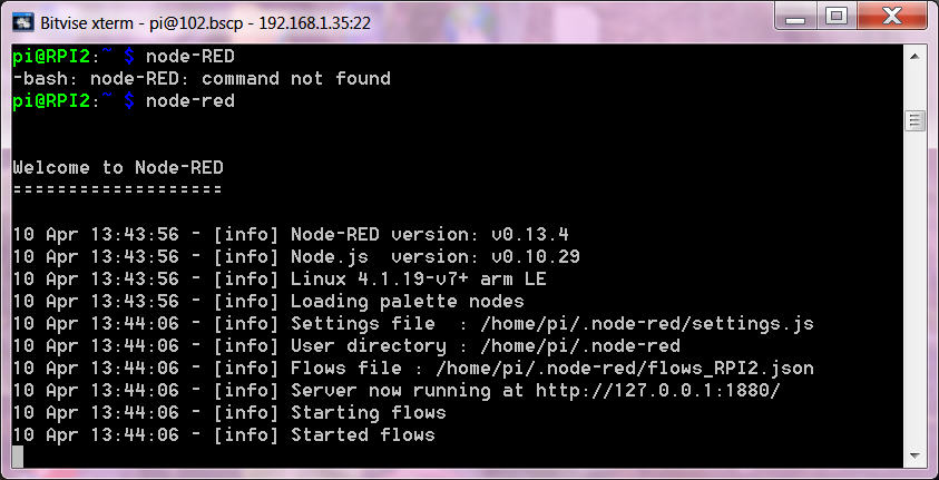 node-red still running, and its webpage at http://192.168.1.x:1880/ also ok.