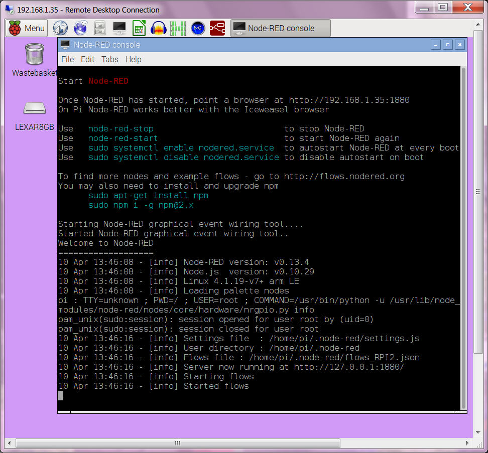 d- start the node-red site in any browser at your network: http://192.168.1.35:1880