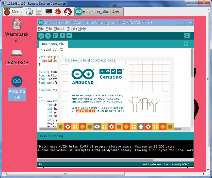 for a sketch with good TIME and RTC ( what already is connected at that UNO ) would be good to have a newer arduino IDE on RPI:
