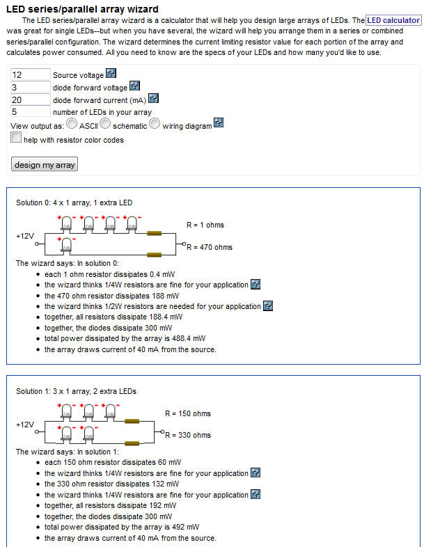 and use 12V, 3V, 20mA, 5 leds and get 4 different ways to wire them.