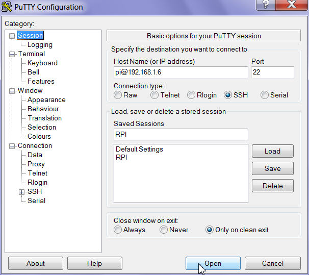 Now exit your SSH session, and log back in as pi, then grant mod rights to root.