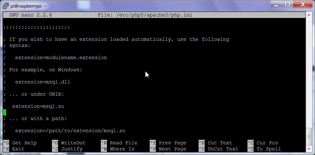 Now, to fix any bugs, edit the php.ini file and remove the semicolon in front of