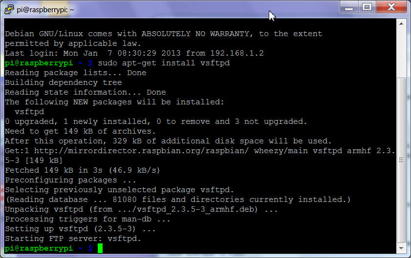 We will now install FTP to allow transferring files to and from your Raspberry Pi.