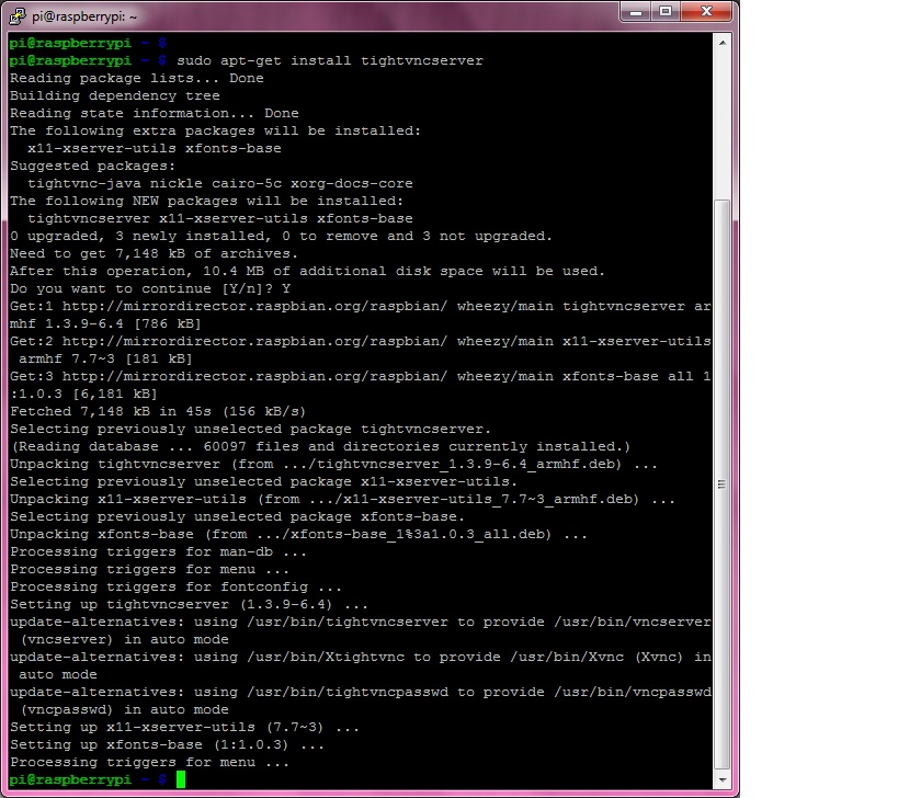 now from there install the VNC server for RPI sudo apt-get install tightvncserver