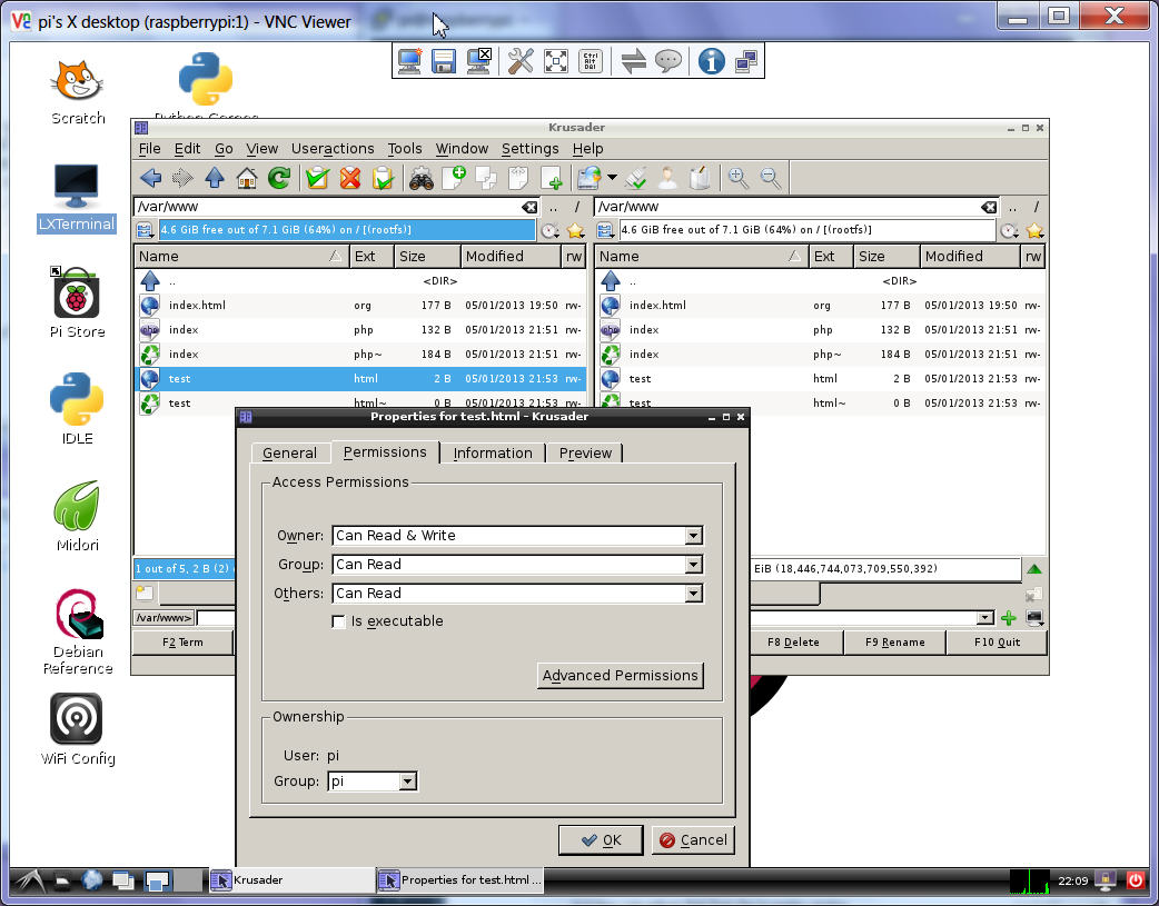 -rwxr-xr-x 1 pi pi 2 Jan 5 21:53 test.html