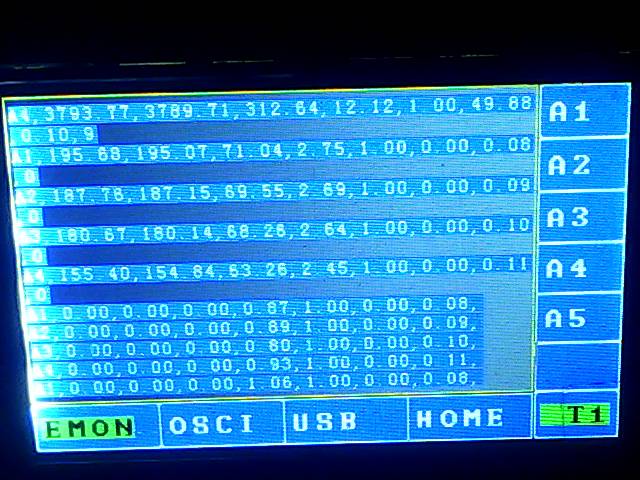 after setup the EMON in a MEGA, compile current 4 lines and output of EMON to T1