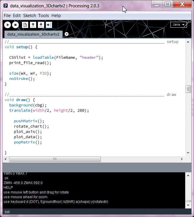 i try to use PROCESSING to show the data ( i made with the included EXCEL file ( OO export ))