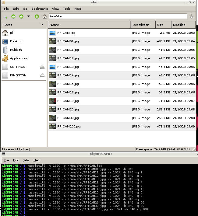and also about filesize, test it using options -w , -h, ( pixel of the photo ) and jpg quality -q option