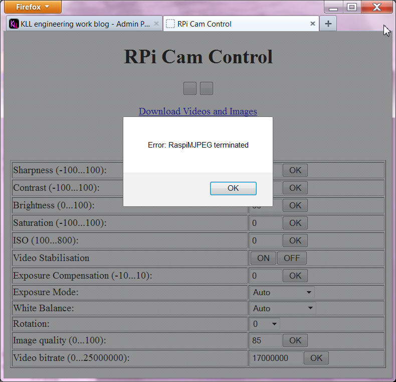 i rebooted in my old RPICAM2 ( python motion ++ ) version