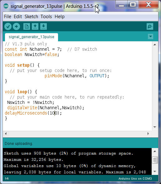 -3- make a puls (5V) by arduino UNO Dout7 with delay 100usec