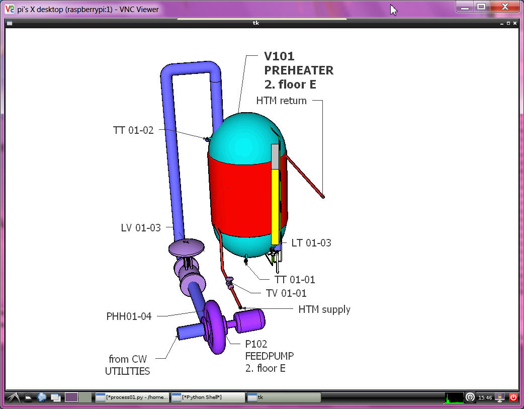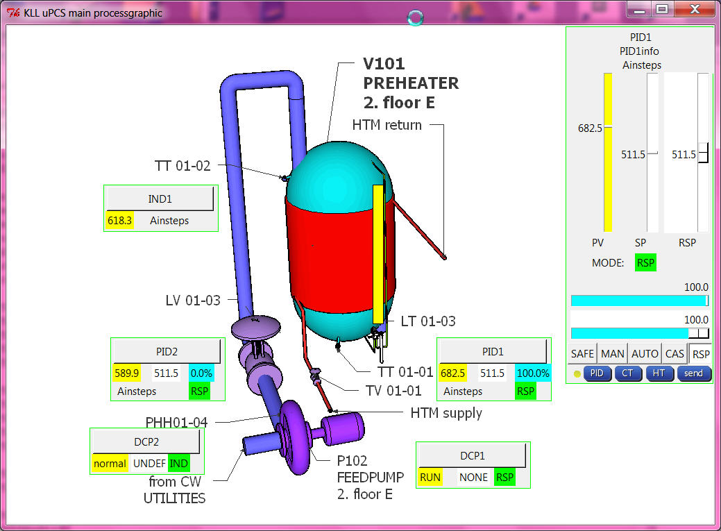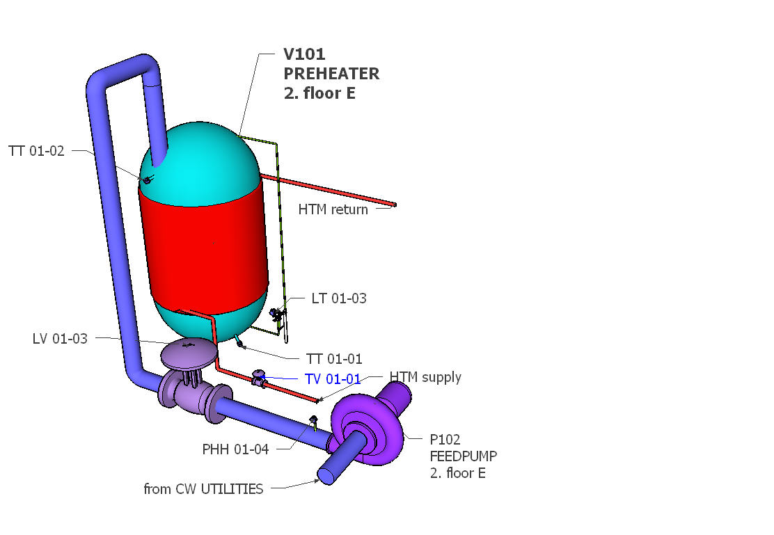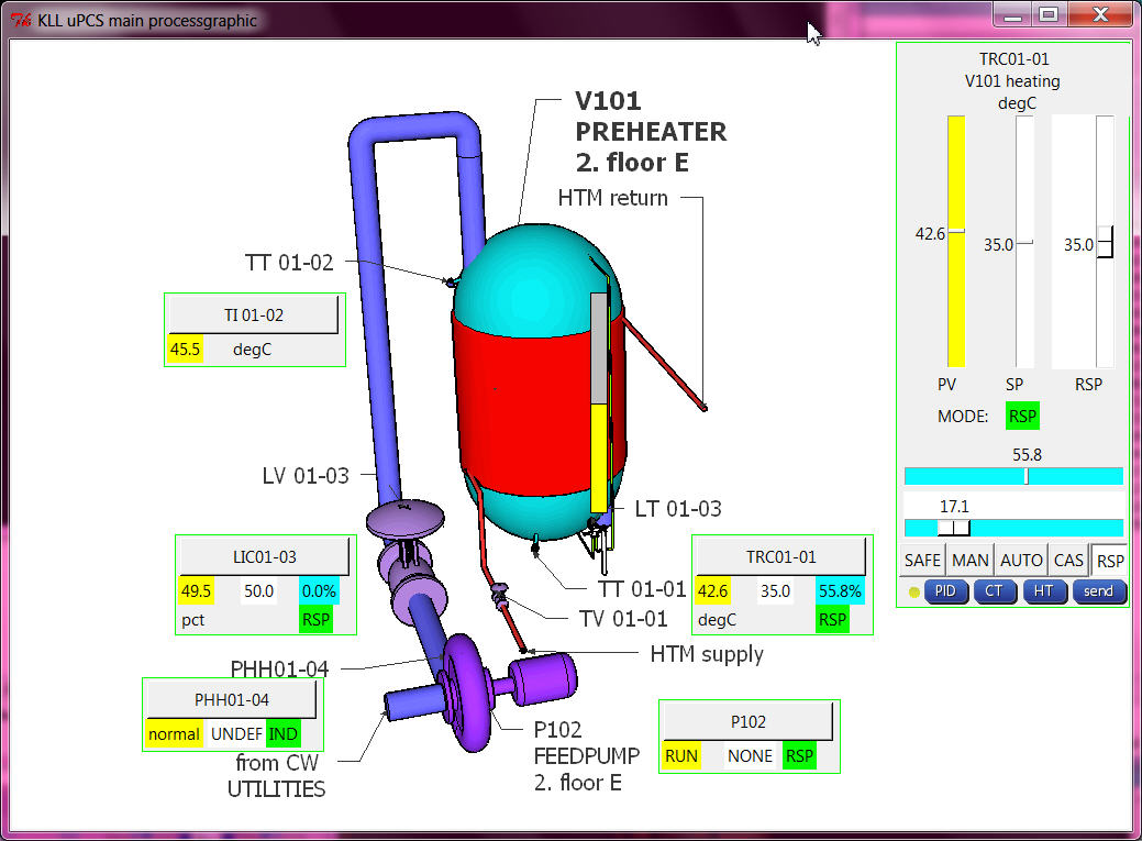 now i am confident i should go that way, even making the required dynamic prototypes might take some time and also i am not very good with the sketch up 3D tool, i can ( and would ) not make a detailed static process graphic like i used above for the test. Actually i think that level of detail only distract the operators, more important is info like vessel name ( possibly location ) / loop name, all what they need to shout out to the field operators via the speaker system.