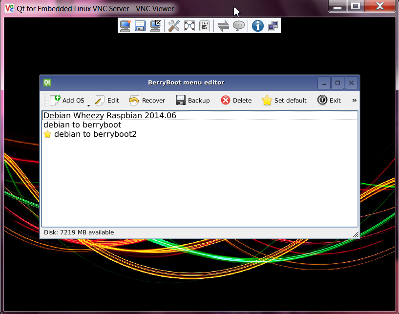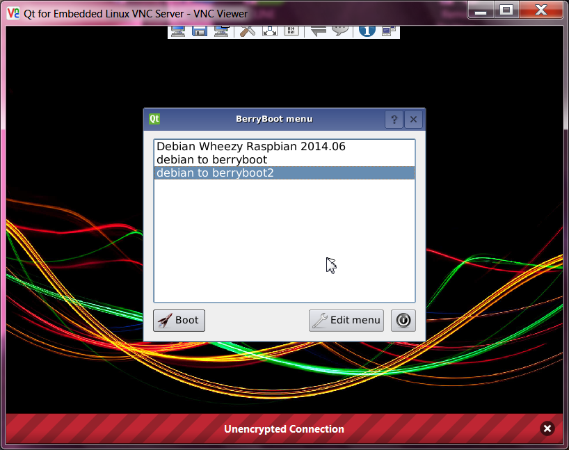 reboot with USB stick with 4 converted debian OS / VNC berryboot menu editor / and add/copy OS