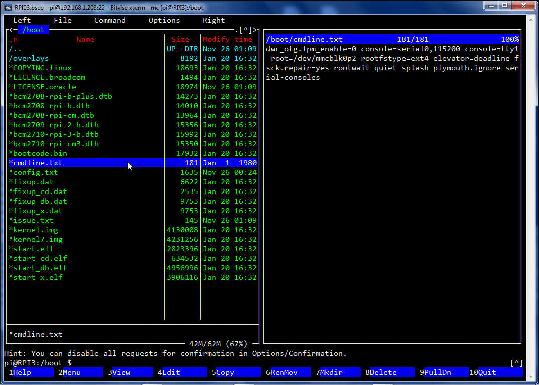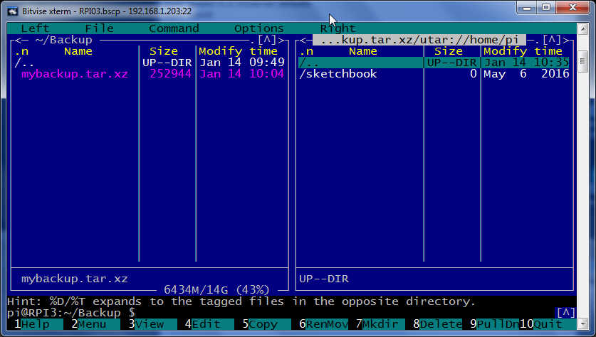 but still the MC has its use: it can run in putty window and can FTP ( without install FTP on RPI )