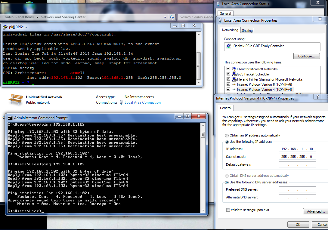 regarding headless and headless short wired ( ethernet cable between windows laptop and RPI )