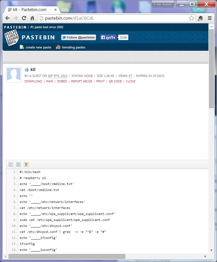 http://pastebin.com/d1aC6CdL what works, but is like a GUEST send me?? but it is not a entry in my pastebin??