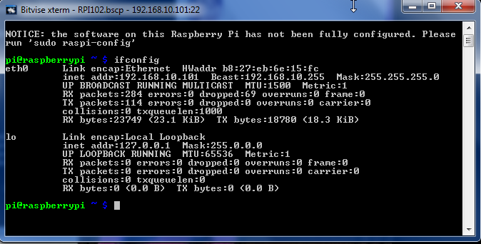with fix IP on laptop 192.168.1.10 and RPI 192.168.1.101