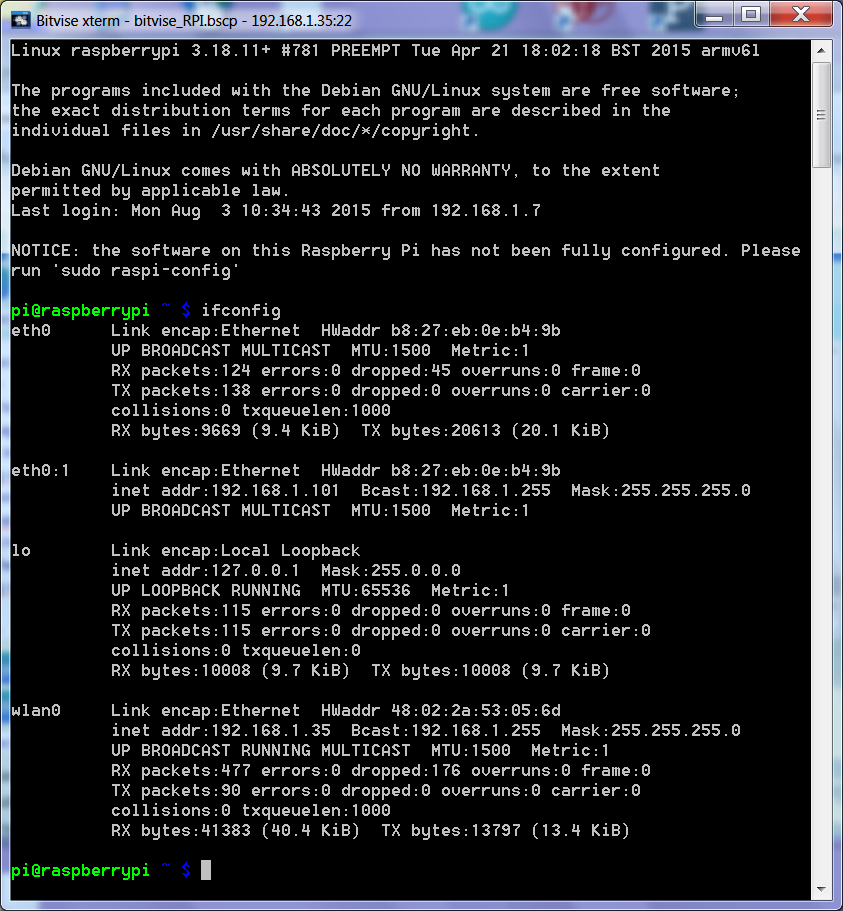 bring back upstairs and connect to network, i can even ssh putty into pidora but all very different there!