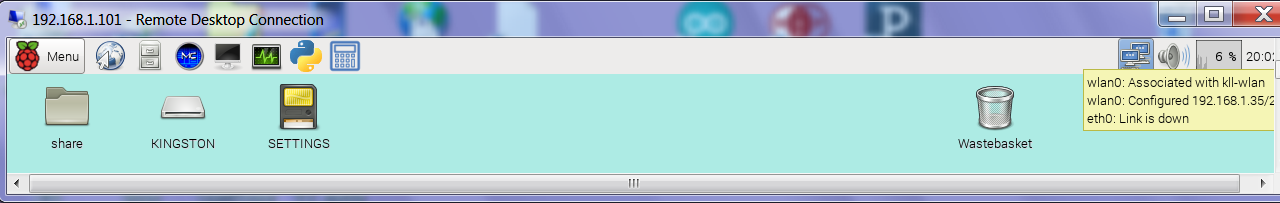 now i have RPI with PS and this noobs noir SD, powered USB HUB with W-Lan adapter