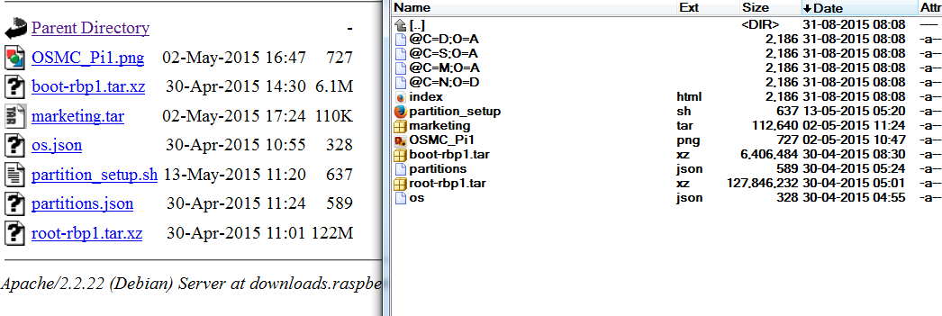 wget -r --level=1 -nH -e robots=off --no-parent --reject "index.html*" http://downloads.raspberrypi.org/osmc_pi1/