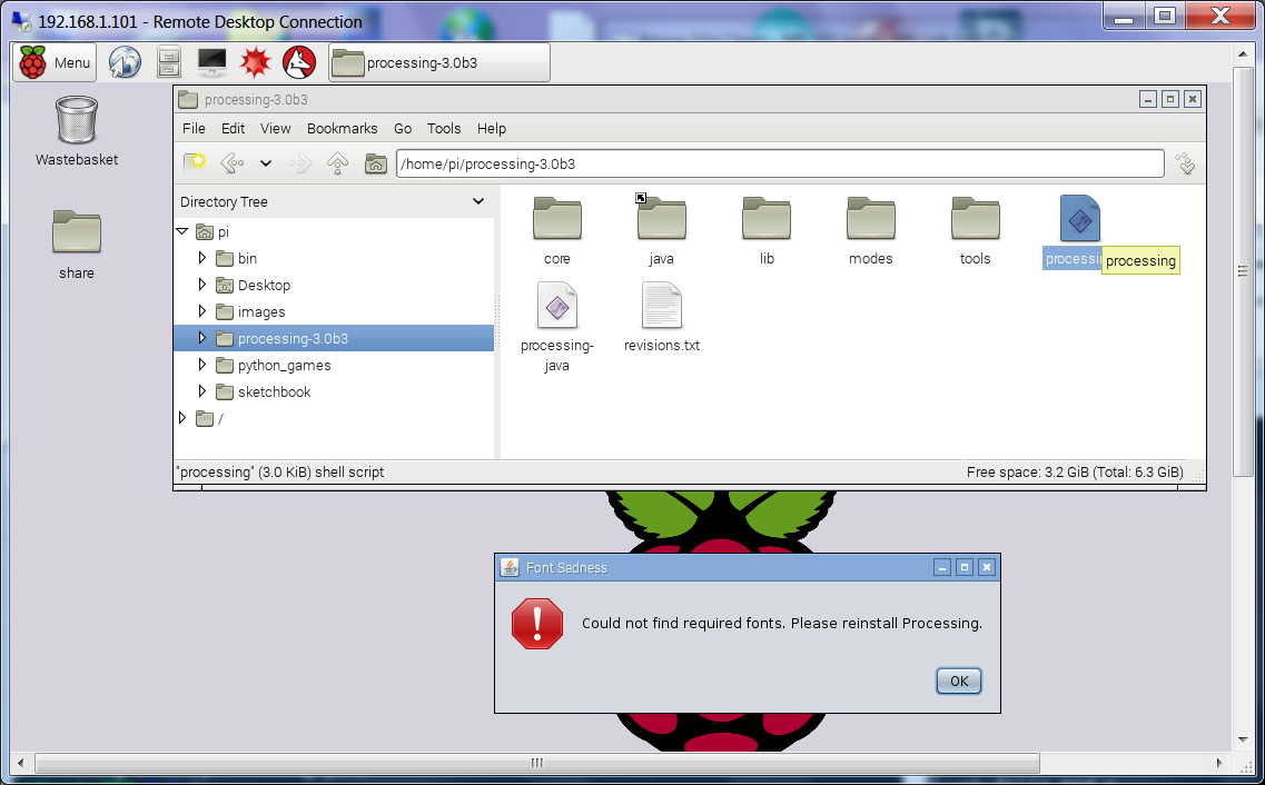 -c- using the processing-3.0b3-linux32.tgz from https://processing.org/download/ i must test on a new setup SD