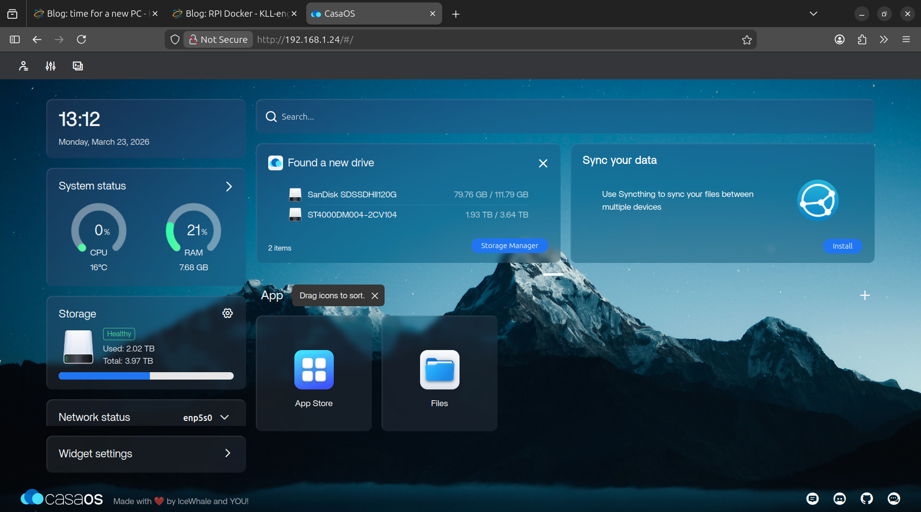 -b- there is a old HD 4TB installed with all my movies / music / pictures / very old windows backup ntfs