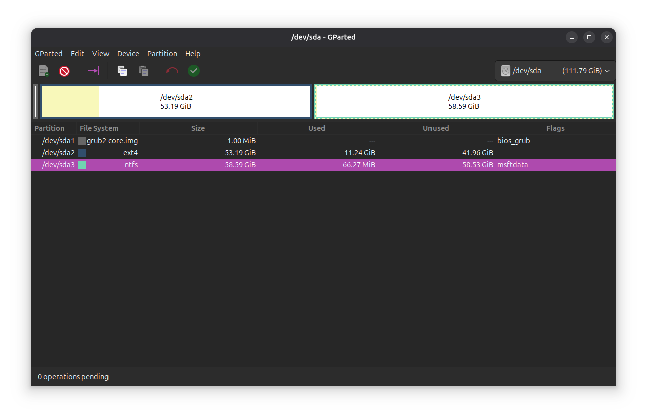 can first reduce size of sata SSD sda2 and make new partition sda3 as NTFS