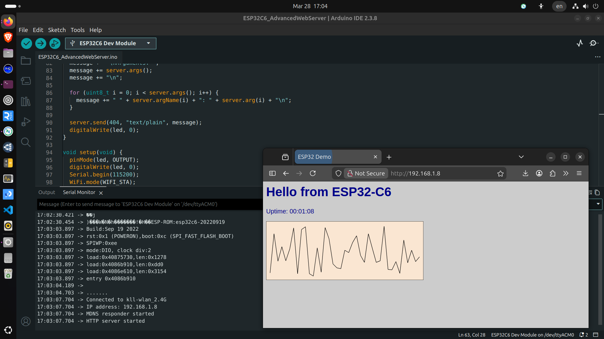 upload and find IP printed to call via browser.
