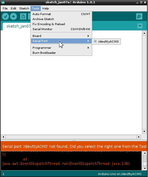 start the arduino serial monitor and see the arduino (soft) boot msg.