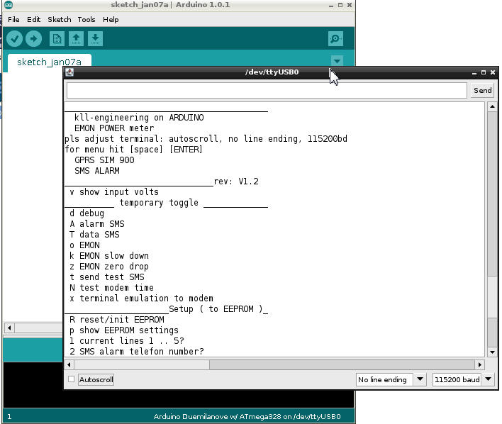 change to my usual speed 115200 and see the arduino (soft) boot msg.