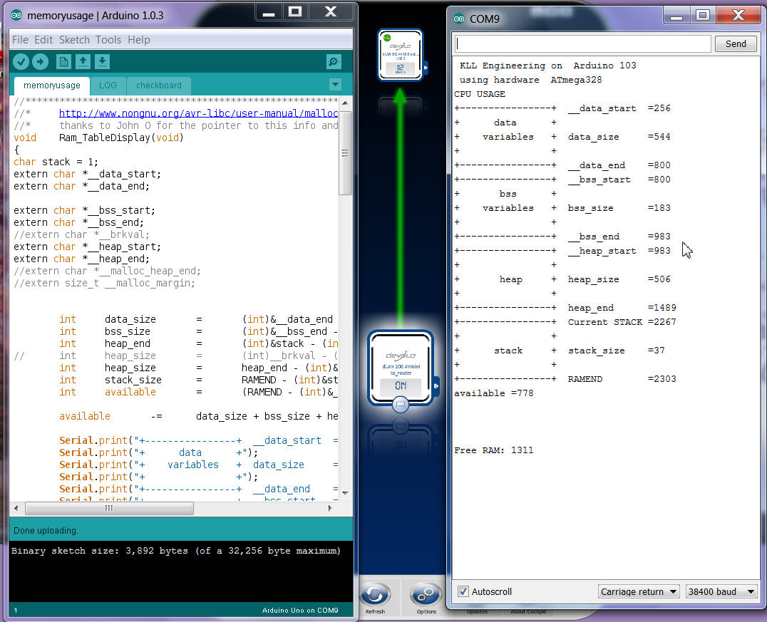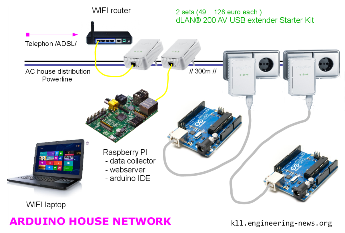here i connect computer via ethernet to dLAN and ARDUINO UNO USB to dLAN USB extender,